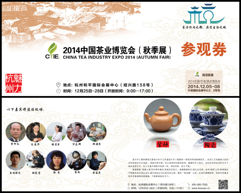 3、本次茶博会紫砂、陶瓷等定制版门票已面世,开始全面投向市场。